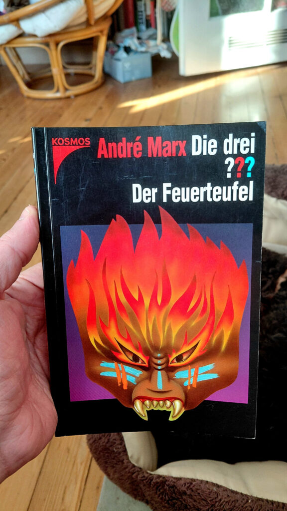 Marx‘ Kleinod der Metafiktion erschien 1999 zunächst als Halloween-Sonderband. Darin kämpft der Autor eines Halloween-Sonderbands mit seinen Kreationen, auch die mitgelieferte Maske kommt vor. Massiv gruselig, angenehm pulpy und voller Anspielungen. Gelungene Abwechslung bei den #3Fragezeichen.